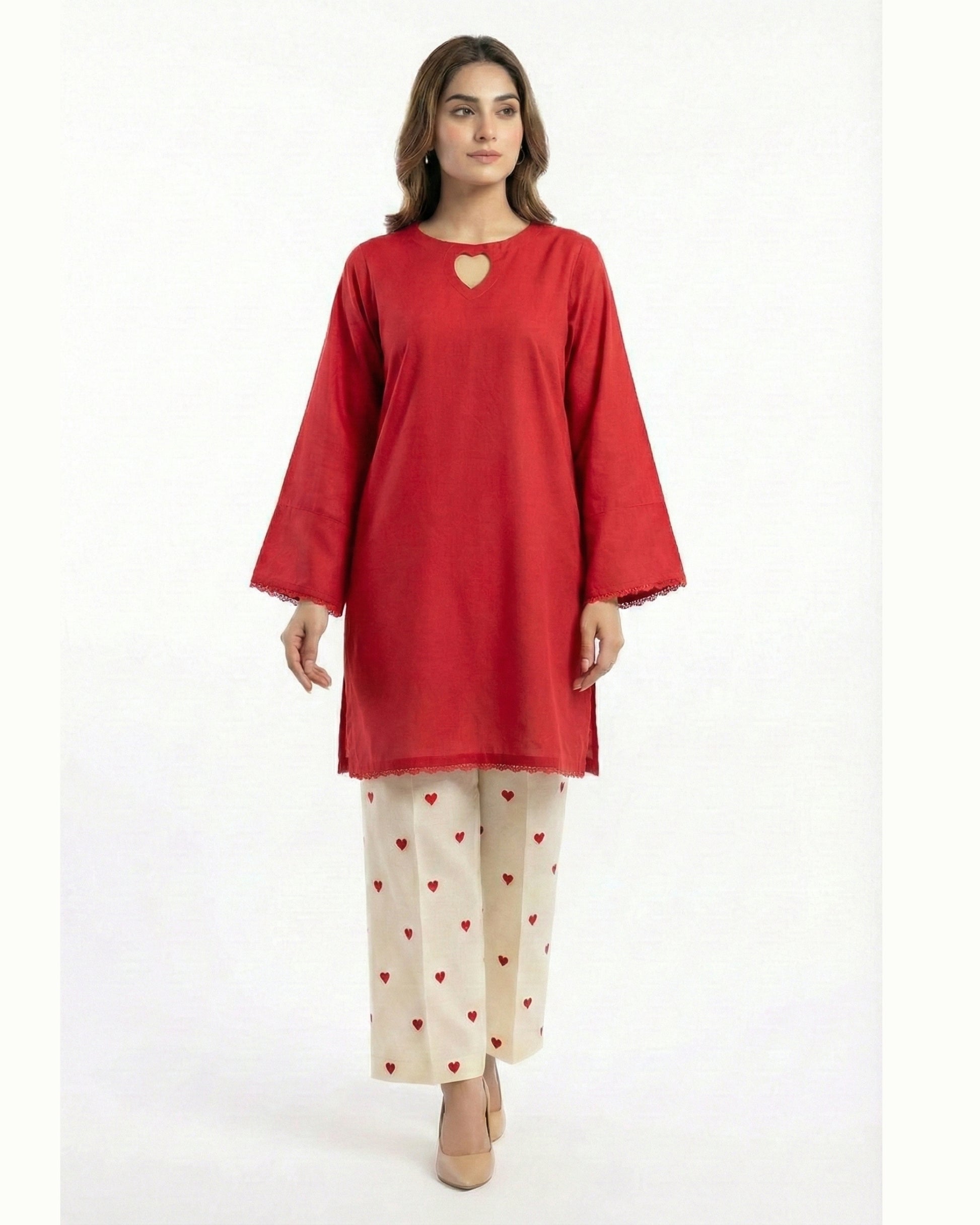 - 1 Shirt (premium lawn) with heart cut-out neckline & lace edging