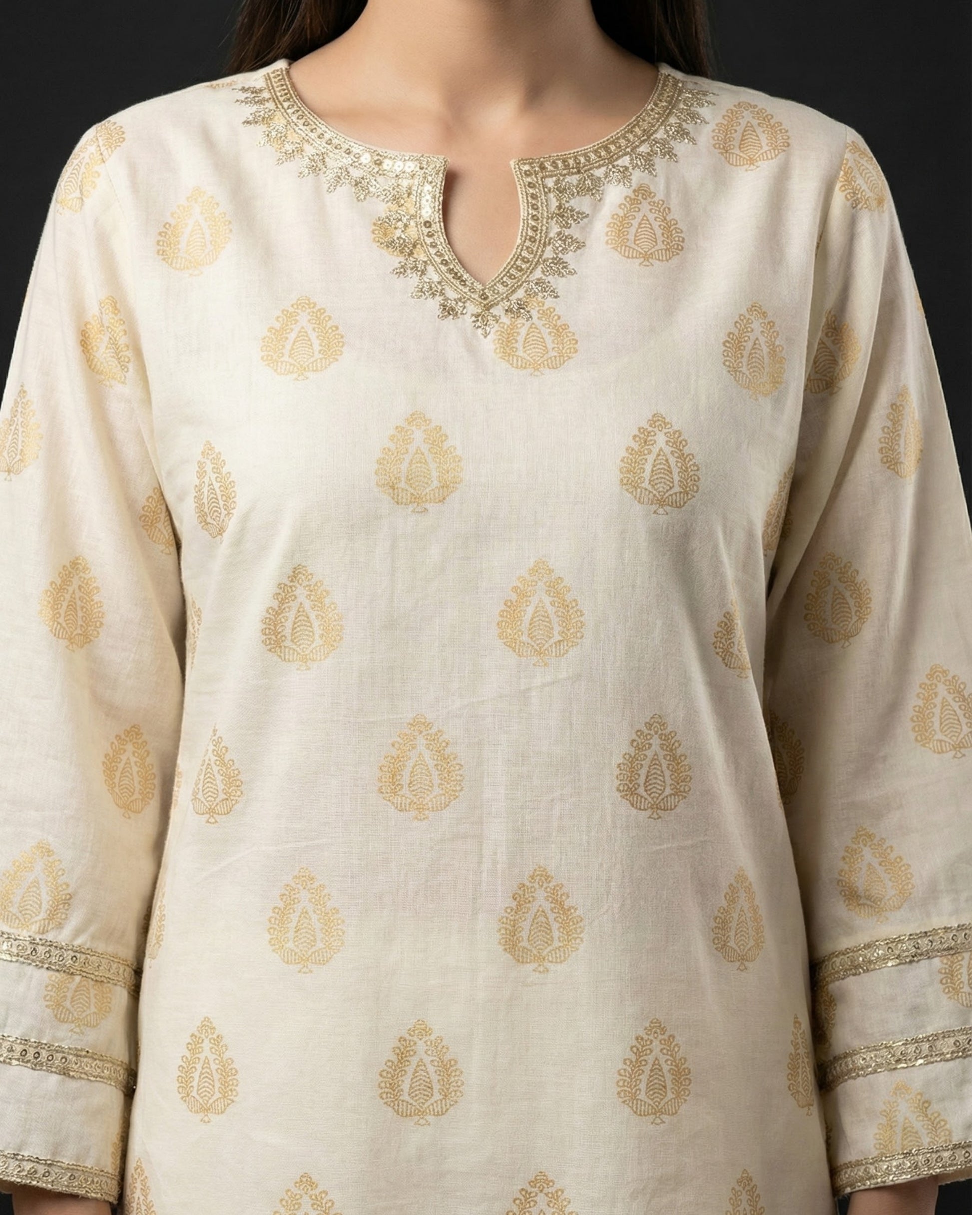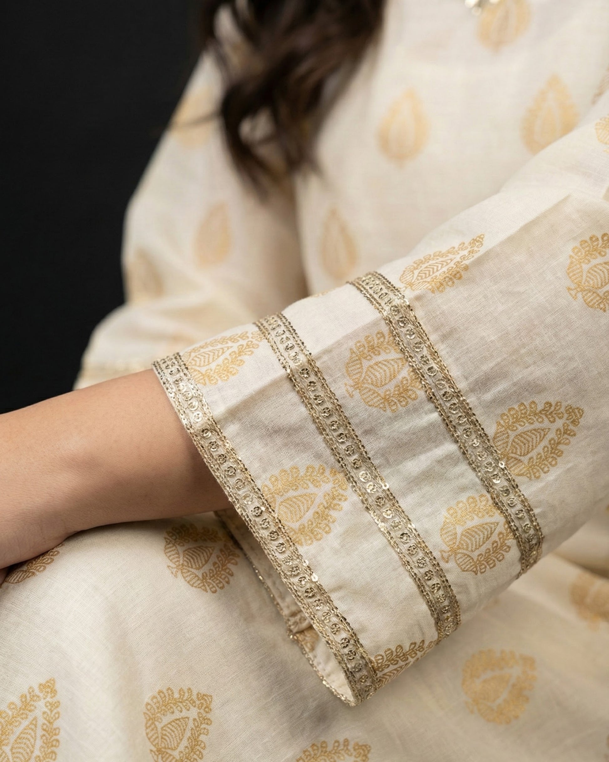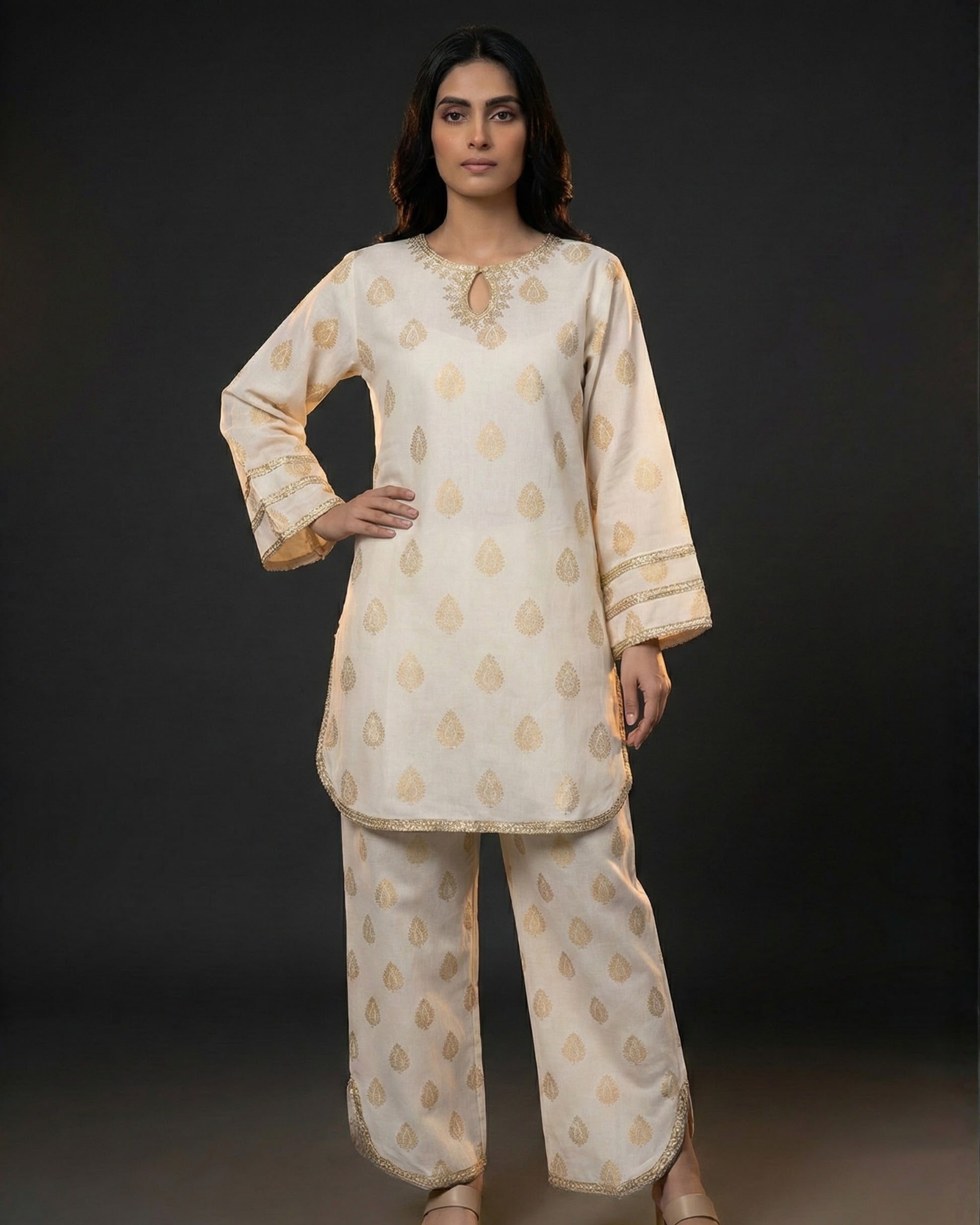 Soft ivory meets warm gold in Aurum, a short-body silhouette designed for Eid mornings, family lunches, and that last-minute evening dawat when you want to look polished without trying too hard. Made for festive days in the heat: breathable lawn, easy movement, and just enough shimmer to feel dressed-up without feeling heavy.
