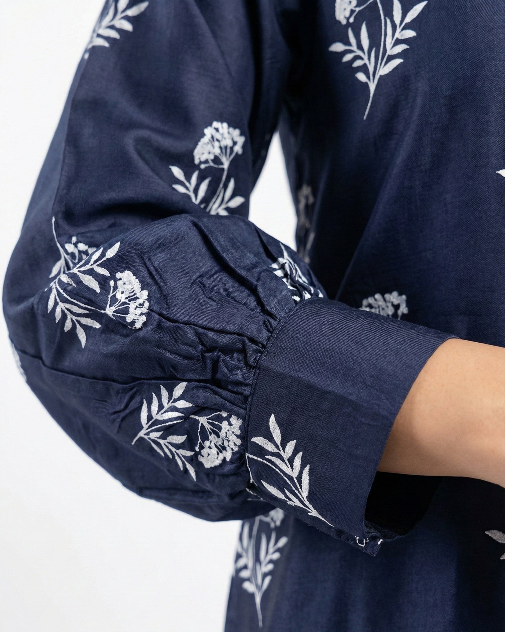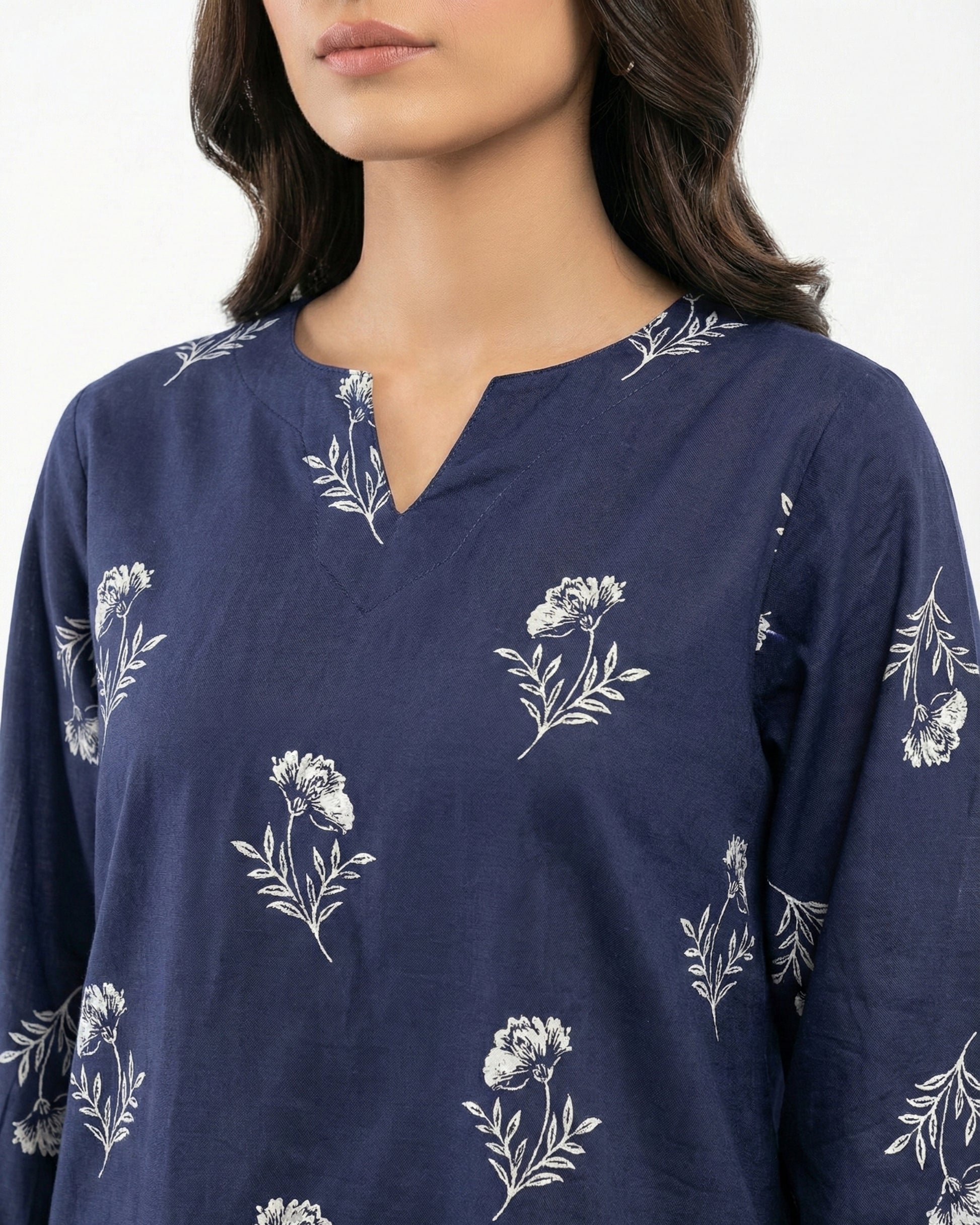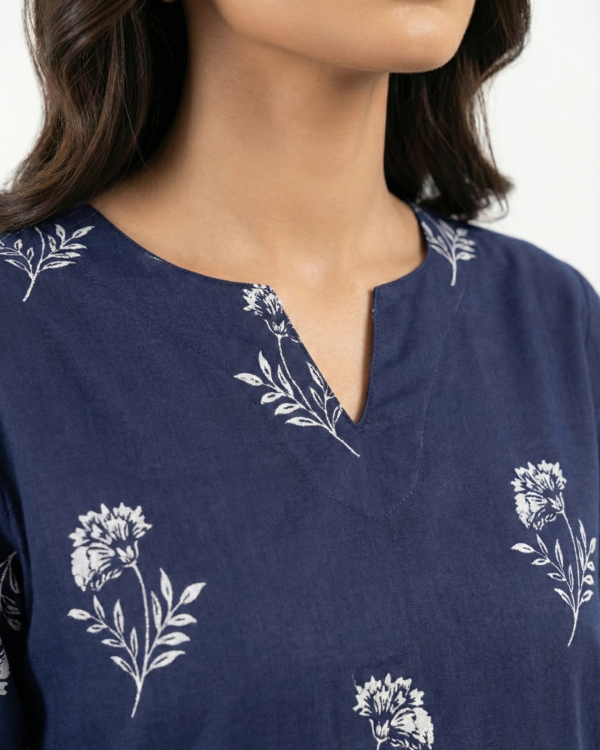 Meet Indigo, a calm, elevated two-piece made for warm days and effortless dressing. Crafted in breathable Premium linen with a deep navy base and soft floral motifs, this stitched set gives you that put-together in seconds feeling without sacrificing comfort.