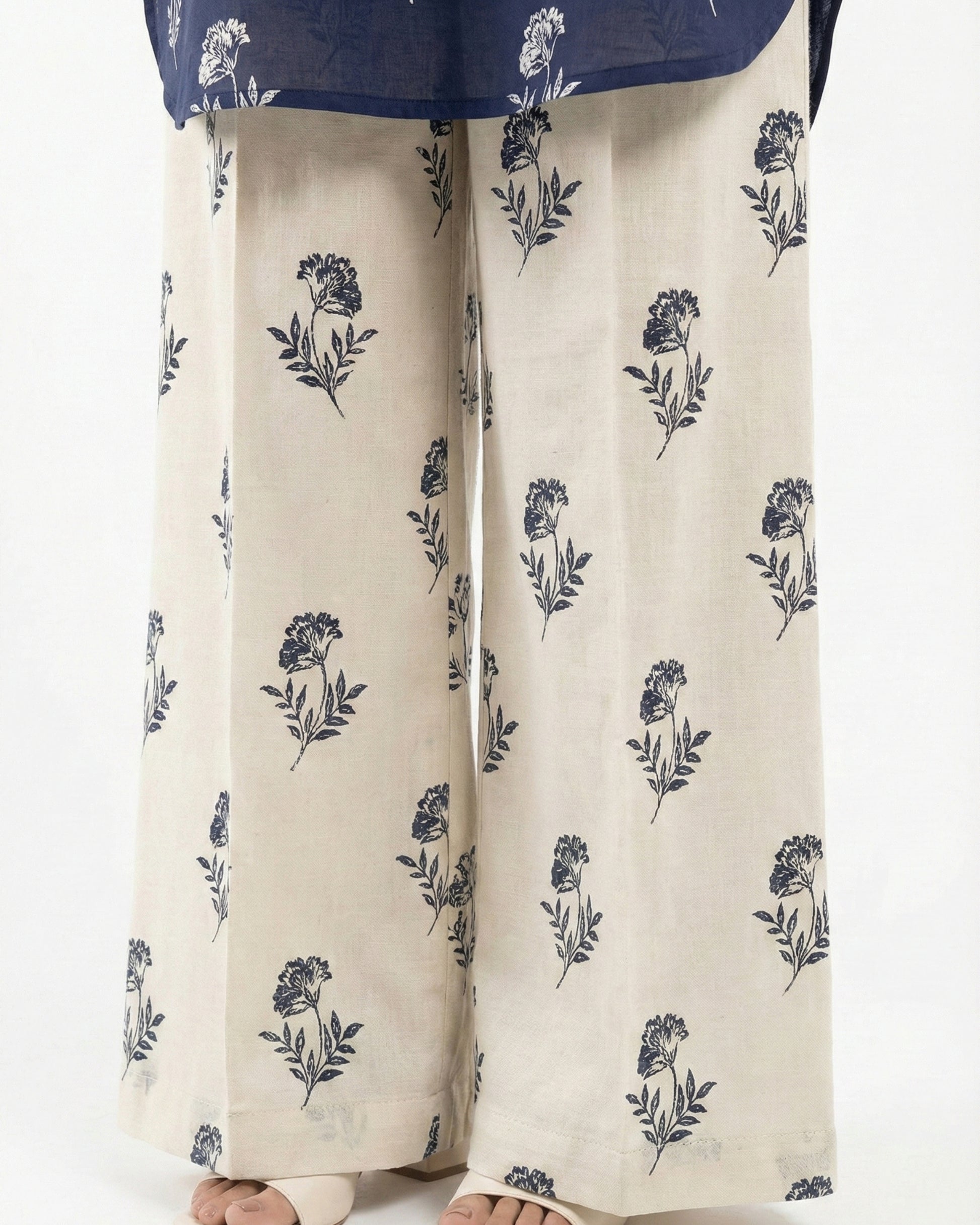 - Printed wide-leg trousers