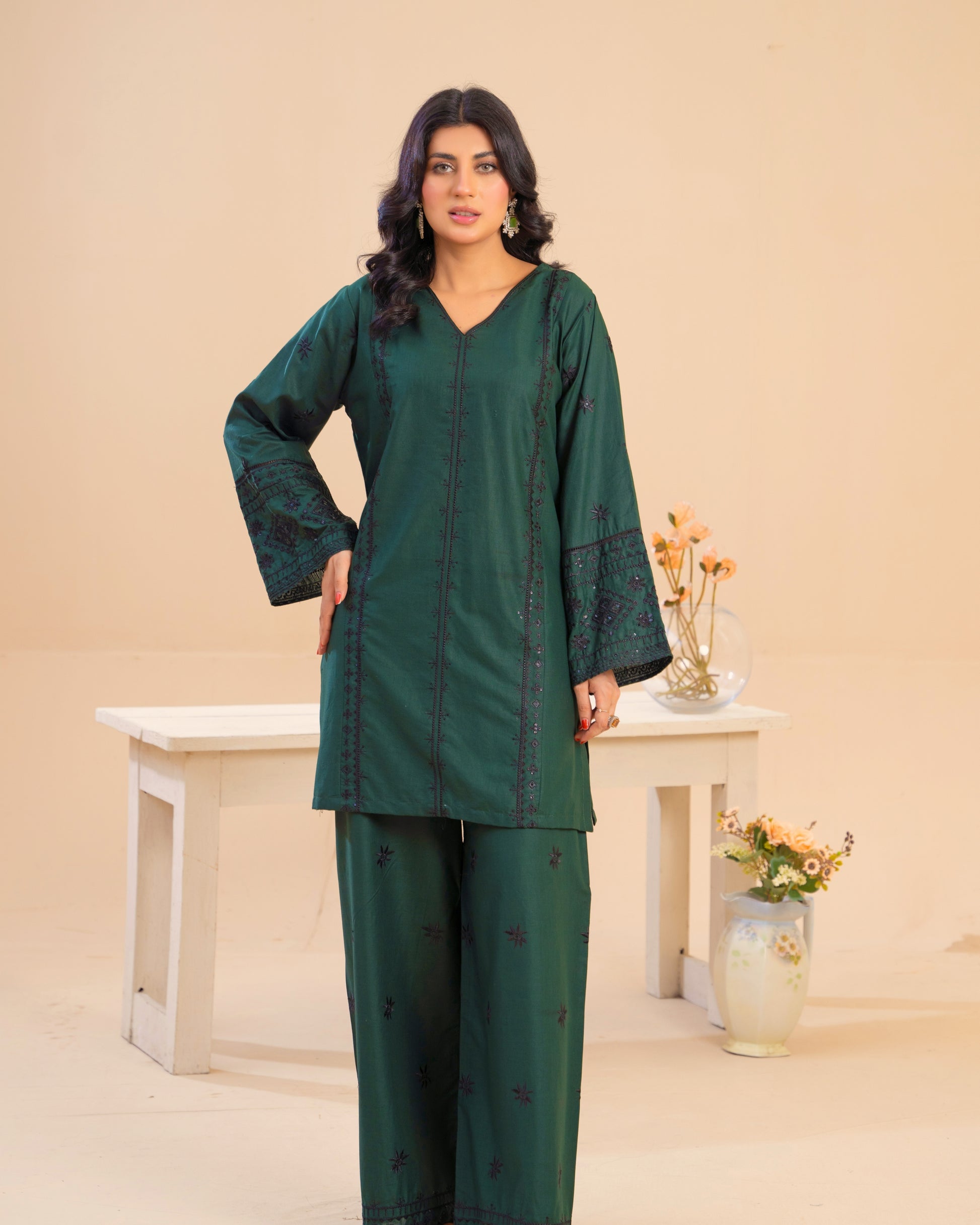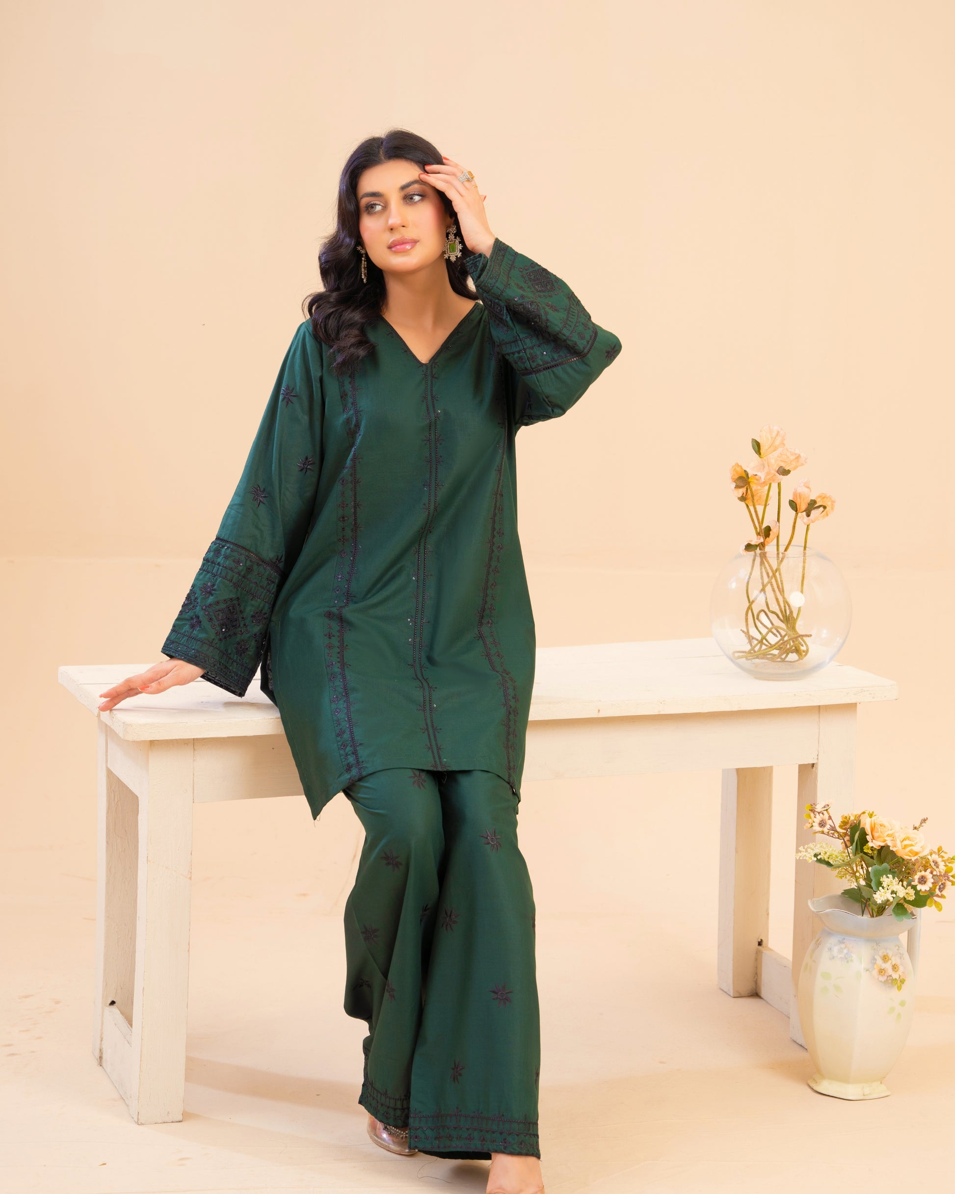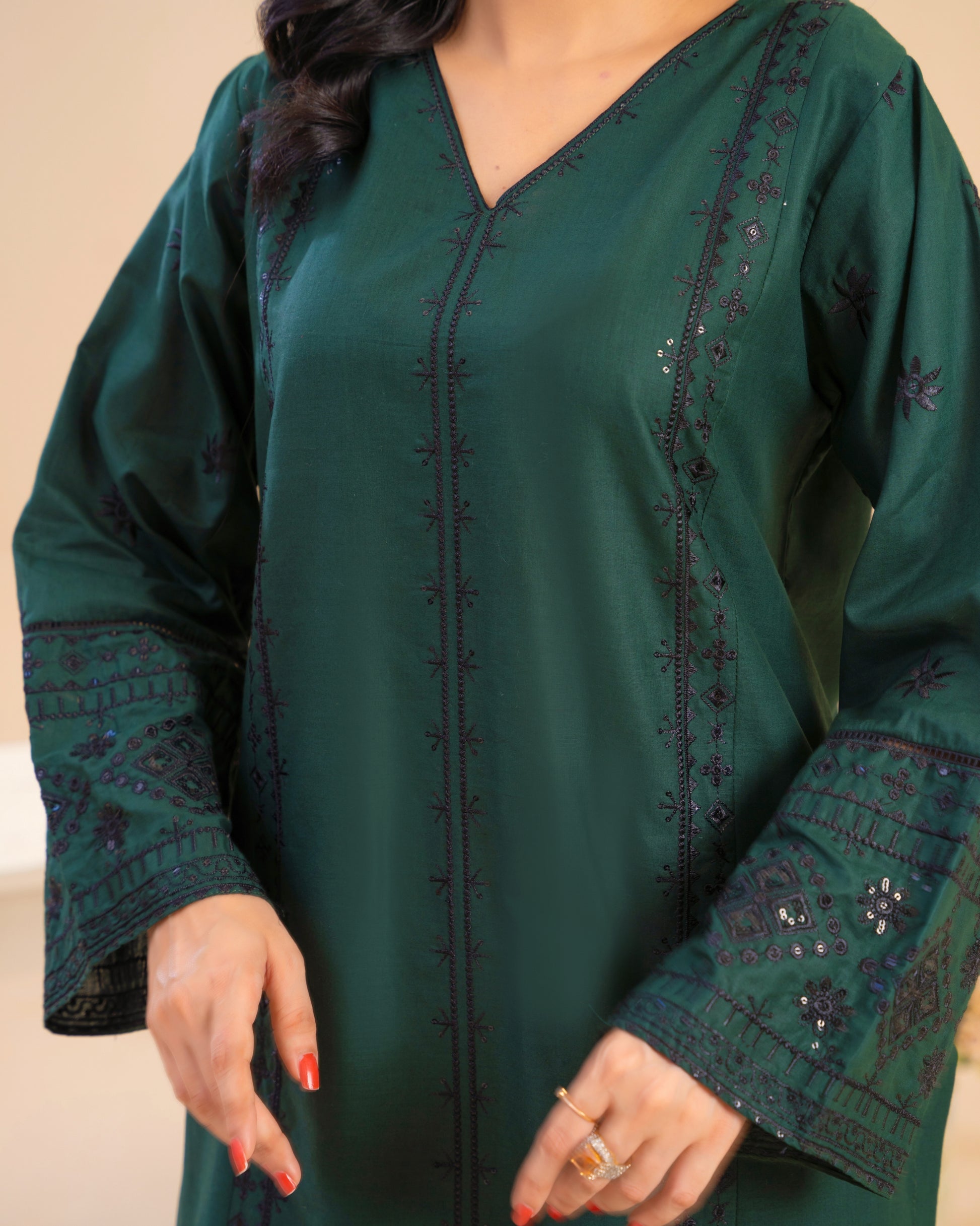 Made for Eid prayer family lunch evening dawat when you want to look put-together without feeling overdressed. Perfect for summer hosting, office-to-dinner days, and weekend get togethers. Inspired by Sindhi geometric stitch lines, modernized into clean, tonal embroidery for today’s minimal-elegant wardrobe.
