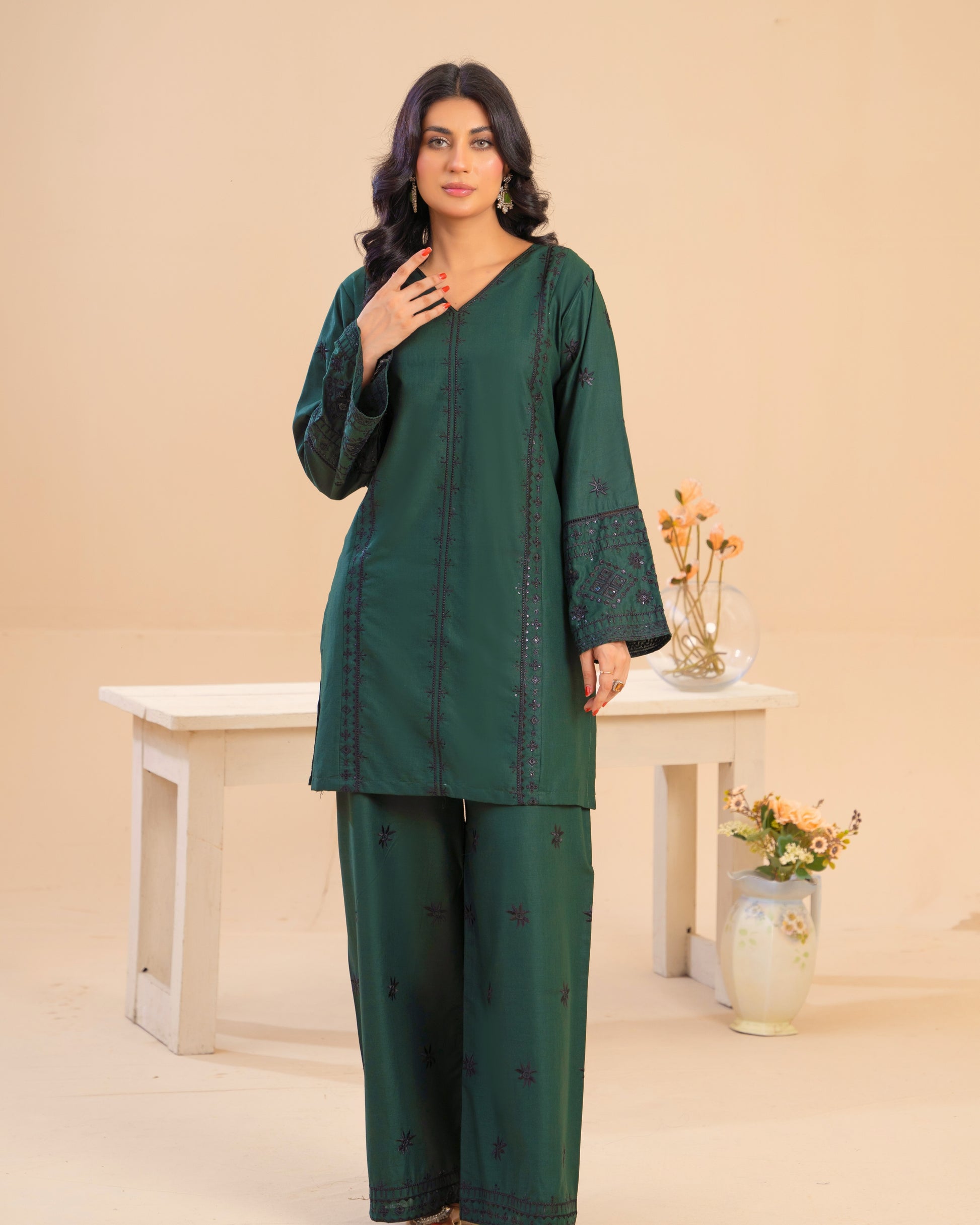 A deep Verde two-piece crafted in premium summer lawn for an effortlessly polished look.
